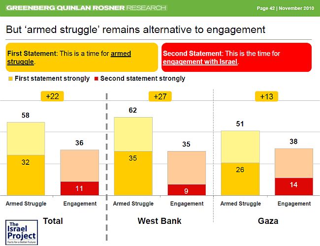 Och en majoritet, 58 procent, menar att beväpnad kamp är vägen framåt: