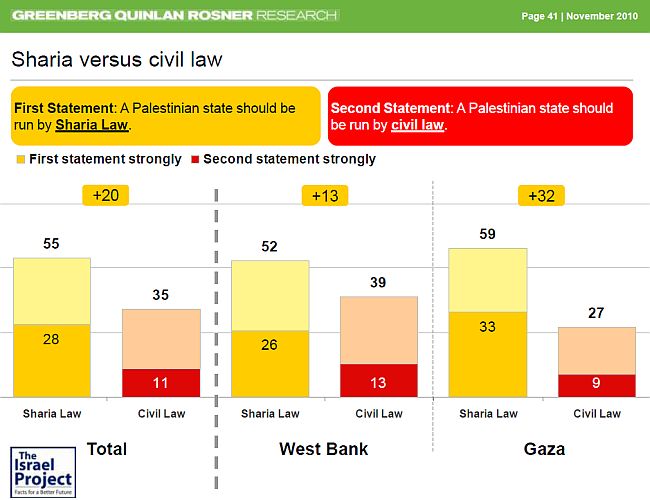 55 procent önskar att en framtida palestinsk stat ska bygga på sharia-lagar:
