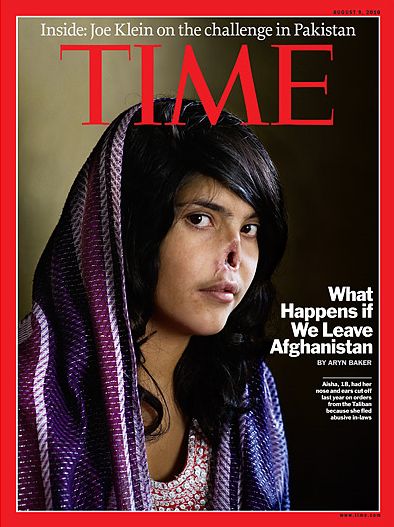 Nu kan alla kritiker pröva sin skäl. På framsidan av det senaste numret av tidskriften Time visas en bild på en afghansk kvinna som har fått sin näsa och sina öron avskurna av talibanerna som straff. Hennes brott: hon flydde från sina svärföräldrar för att de behandlade henne illa.